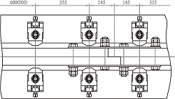 TGL型压轨器布置间距可按吊车起重量而分。即Q≤275t时,间距为600mm;Q>275t,间距为500mm,见图1。所需压轨器数量可按下式求得: