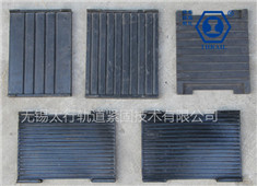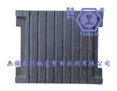 无锡太行轨道紧固技术有限公司研发生产的橡胶垫板分两种系列:连续式胶垫板和间断式胶垫板,连续式胶垫板采用耐磨损、抗压、抗氧化、抗紫外线照射及耐油污的合成橡胶制成。胶垫的表面上有凹槽,能保证钢轨地面与胶垫始终紧密接触,减少了胶垫的磨损。胶垫中间镶有加强胶垫侧向钢度的钢片,钢片厚度非常薄,容易卷起来进行运输,钢片宽度与胶垫宽度是成一定比例的温度范围:-25℃~100℃。其产品广泛应用于港口、造船厂、钢铁厂、焦化厂、水泥厂、电厂等行业。